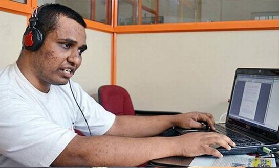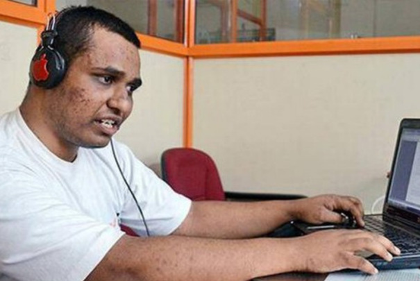 Blind Student of Nethra Vidyalaya Working in SOA IT Solutions, Bangalore