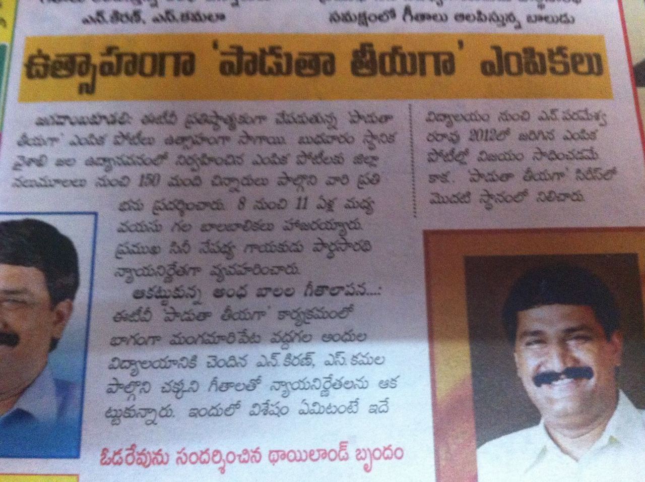 With the blessings of Sri Sri Sri Chinna jeeyar Swamiji.After winning in district level sports competitions, Nethra Vidyalaya students participated in Disabled state level sports meet at Vijayawada and bagged 10 Gold, 2 Silver,2 Bronze ย in running, shot put, long jump, disc throw and chess.Twoย of our students participated in paduthatheyaga preliminary selections, they were praised for their performance Selections result will be given after December 15 th. With our acharya’s blessings they will be selected and an article was given in news paper.